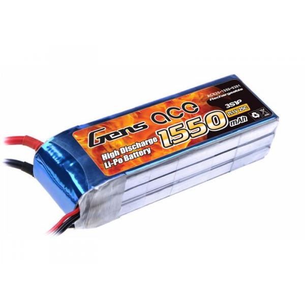 Gens ace 1550mAh 11.1V 25C 3S1P Lipo Battery Pack with Deans Connector