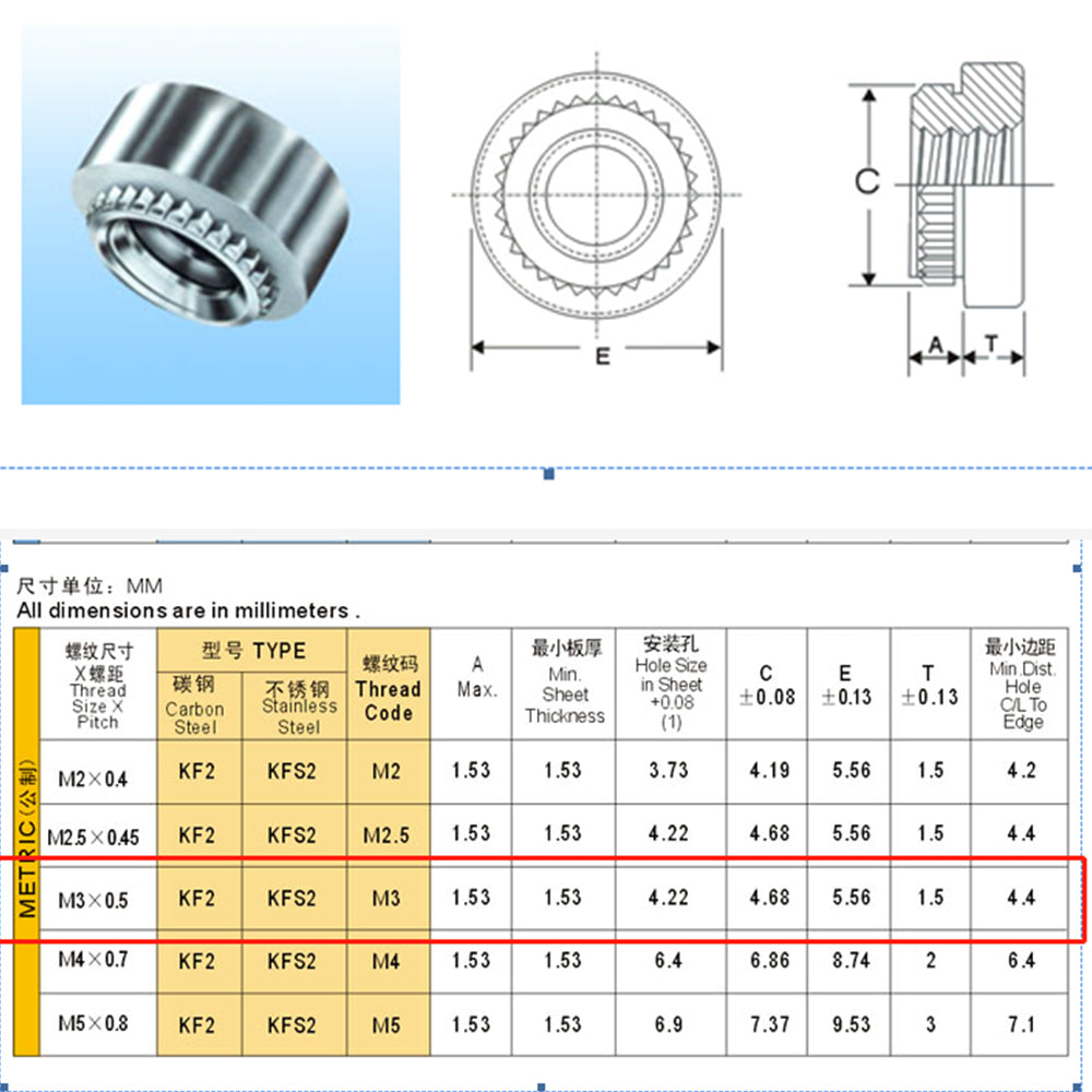 Flywoo M3 Clinch Nuts (20pcs - Titanium )