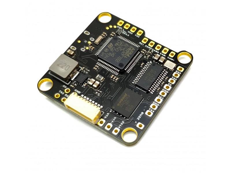 The upgraded version of the F7 board with MPU6000 gyro. The 2.1 brings a notch in the board for camera space and slightly reconfigured jumpers. This FC does not have an integrated PDB, making it ideal for use with 4in1 ESCs (or a PDB and separate ESCs). It does all the latest tricks like camera control and VTX power switching and packs enough UARTs to keep most of us looking for other things to connect!