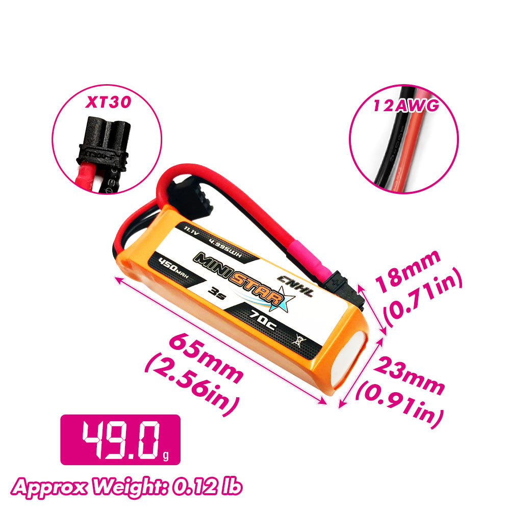 CNHL MiniStar Series 450mAh 11.1V 3S 70C LiPo Battery with XT30 Plug (1 Pack)
