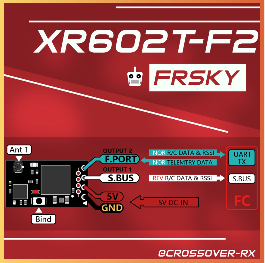 CROSSOVER RX XR602T-F2(FRSKY-D16) SBUS/FPORT/RSSI/Full-RFPower/TELEM/D-ANT MicroFPVRX