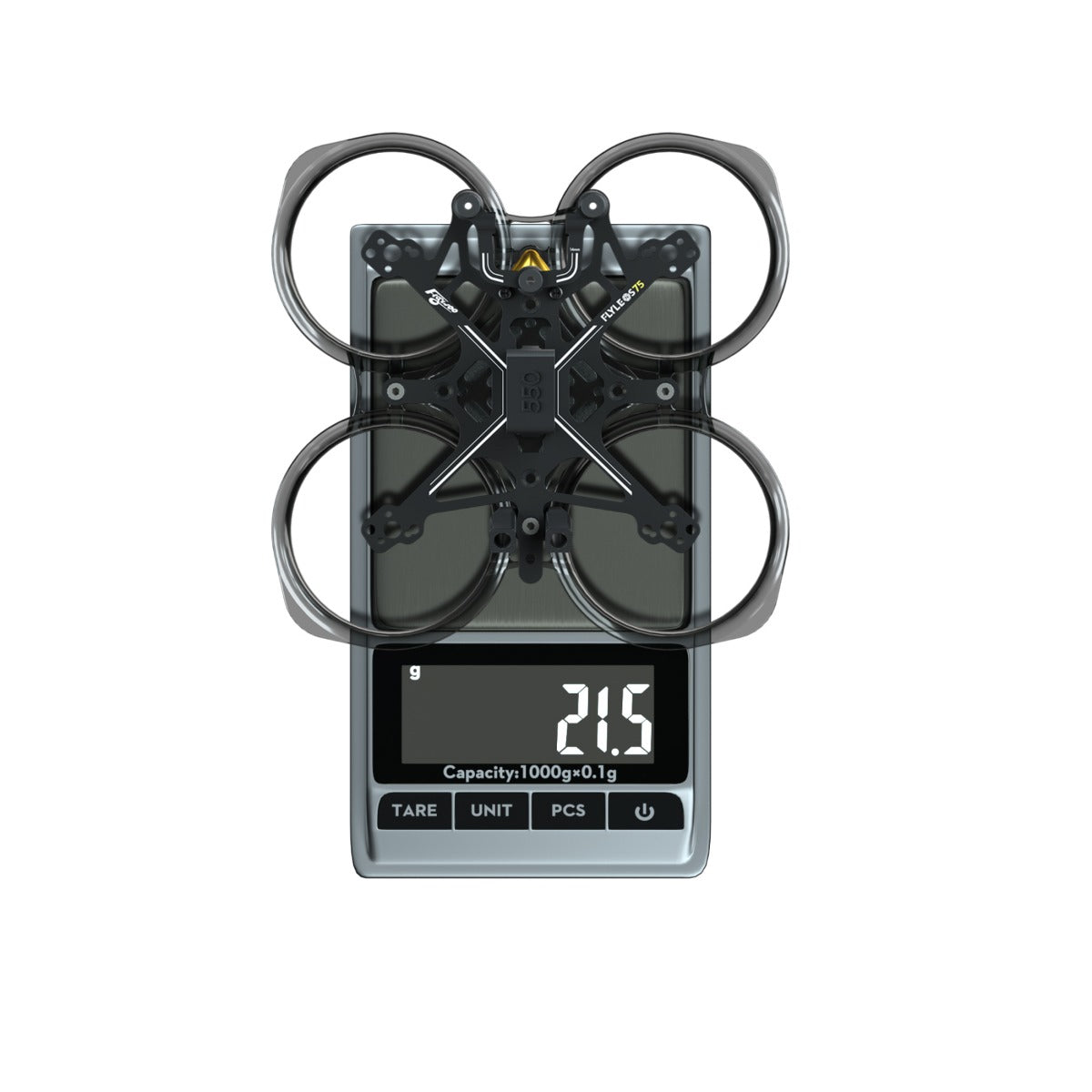 The Flylens 75 frame is a 1.6-inch whoop-type frame designed for indoor and narrow space flight. It is compatible with various mainstream digital and analog image transmission systems. The frame is equipped with an injection-molded protective ring and a carbon black treatment process.