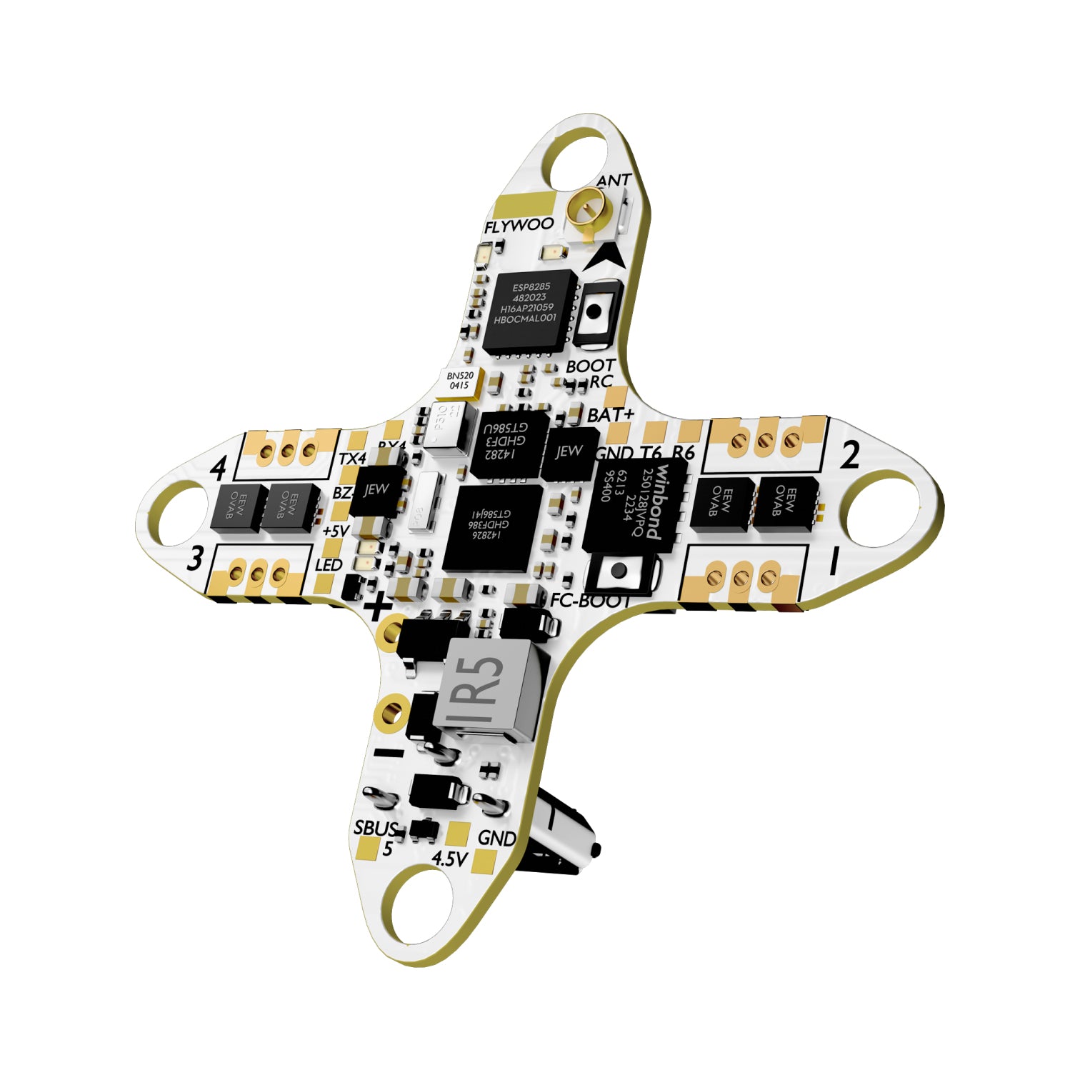 Built around the STM32F405 BGA MCU, this all-in-one (AIO) board delivers superior computational power while maintaining an exceptionally lightweight design of 2.6g (excluding motor connectors ). Its cross-shaped PCB stacking ensures seamless compatibility with all 1S frame kits, making it ideal for pilots seeking precision, reliability, and adaptability in micro HD builds.