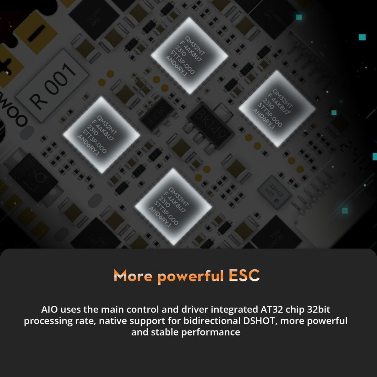 Since its launch, the GOKU GN745 AIO has stood as Flywoo's top-tier AIO product, earning widespread acclaim from Betaflight, INAV, and Ardupilot enthusiasts. Now, we're excited to introduce the latest upgrade in this series—the V3 version! The V3 boasts a new ESC two-in-one drive solution, enhancing the continuous current capacity to 45A and improving the overcurrent protection capability of the motor pads, resulting in a more powerful overall performance. Furthermore, the V3 version significantly advances in terms of convenience, featuring 4 new direct-plug Uart ports and adopting a Type-C interface for easier connectivity.
