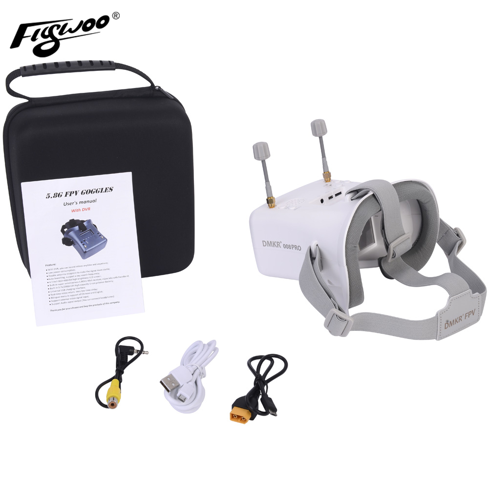 FLYWOO VR008 PRO FPV Goggle with 5.8GHz 40ch Receiver 3.7V/2000mAh Battery 4.3 inch HD LCD 16:9 for Racing Drone Micro Whoop Drone
