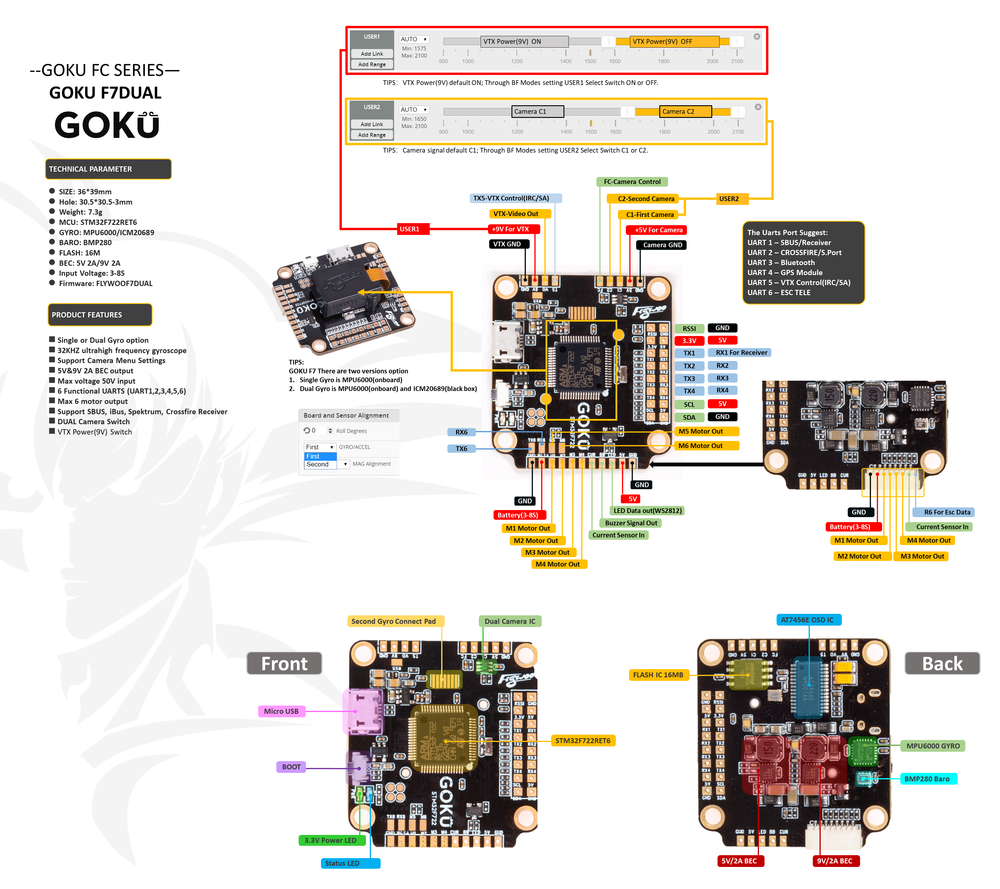 GOKU FC F722 Flight Controller Built In OSD 5V 9V 2A BEC (MPU 6000)