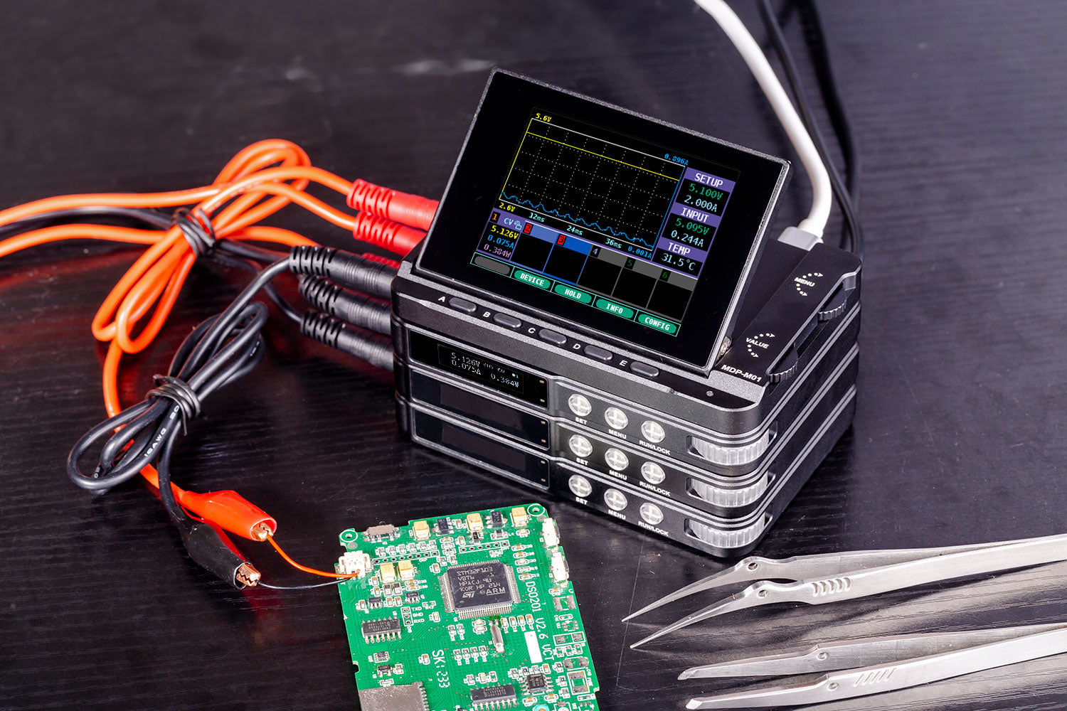 MDP-XP consists of a display control module and a digital power module. Through 2.4G wireless connection, it achieves multichannel free combination at the power of 90W per channel. MDP-XP is a high cost-effective programmable linear DC power supply, featuring indicators, stability, reliability and distinct user interface comparable with professional power supplies; it also provides programmable output, timing output, sequential control, automatic compensation and other powerful functions, so as to meet diversified testing needs.