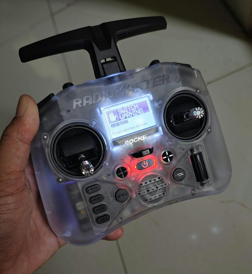 The RadioMaster Pocket is a powerful, ultra-compact radio controller designed for FPV pilots, drone racers, and sim flyers. Despite its small size, it features full-size hall gimbals, EdgeTX firmware, ELRS protocol support, and excellent ergonomics. Available in multiple stylish colors and includes a premium transparent hard case.