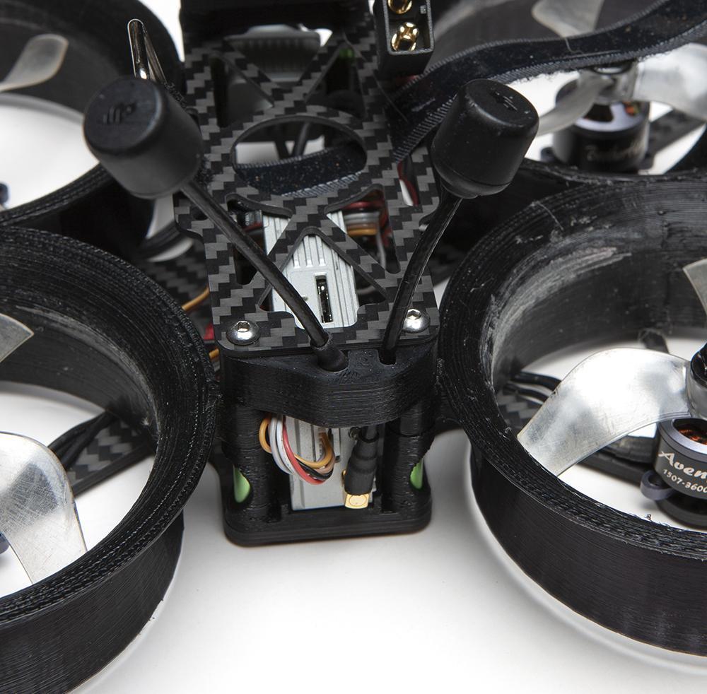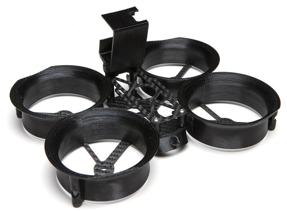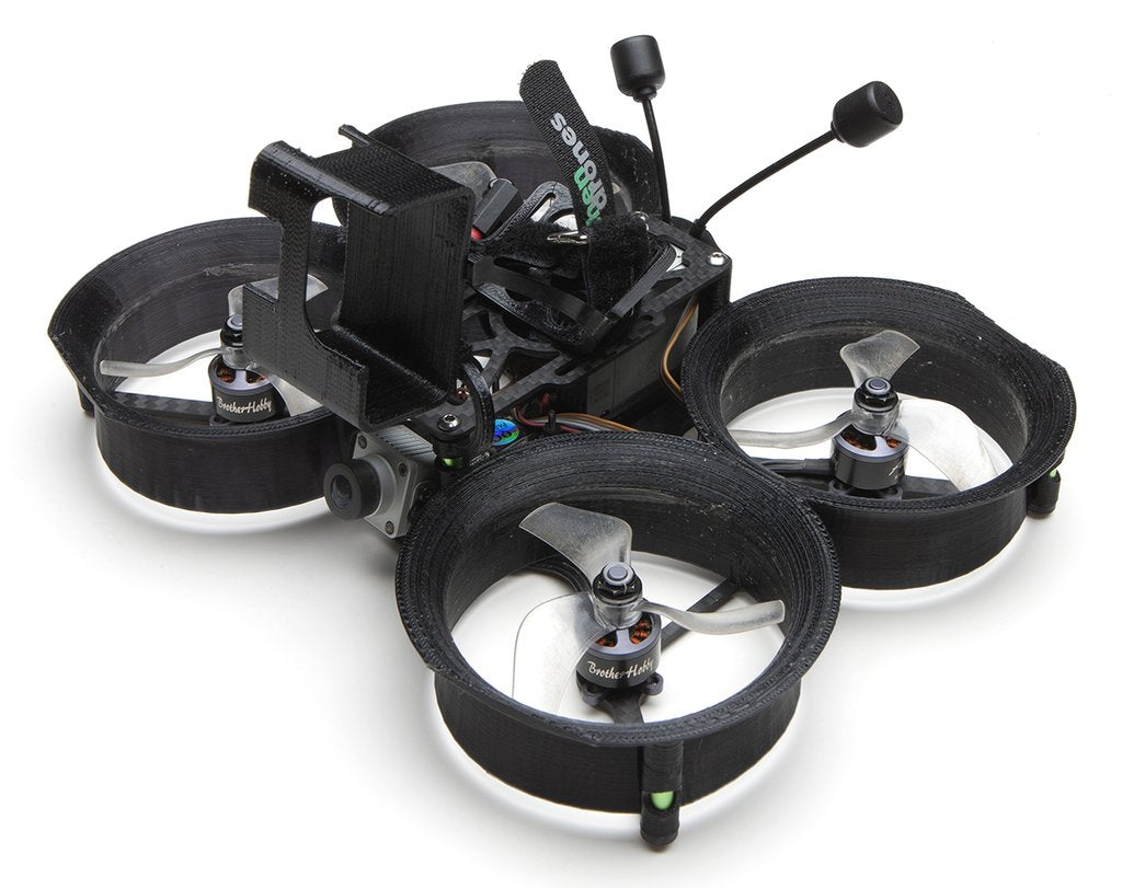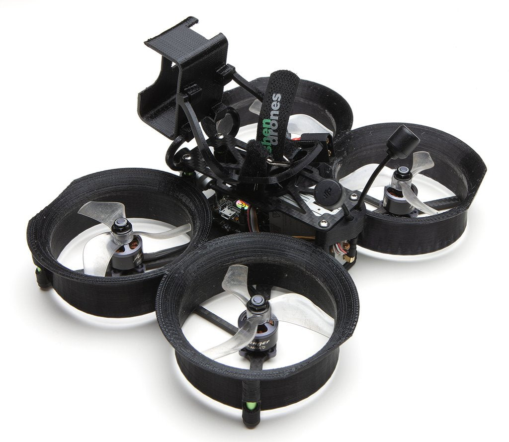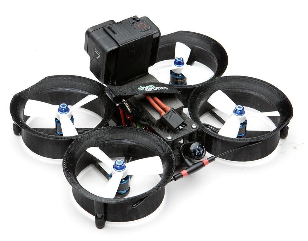 Squirt is a 160mm 3" ducted quad. The ducts generate about 240g more thrust so Squirt is a peppy flyer that can carry a Hero. They also double as prop guards so it's safer to fly in close proximity to people.
