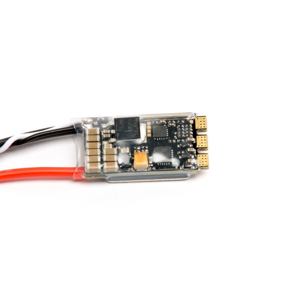 Spedix ES30-HV is the smallest and lightest 6S 30A speed controller in the category so far. It is designed for 150-300 size racing multirotors that have strict demand on power, size, and weight. This ESC use 6 standard MOS-FET with a low resistance of only 1.1mΩ. Compared to the common small size MOS-FET this standard component is much tolerant to current load and surge, and better heat dissipation. However, with our genius engineer design, the overall size of the ESC is almost the same as counterpart product using micro MOS-FET. With the hard work of our engineers, the size and weight of the ESC in controlled under 14.8x29x5mm and 7.9 grams, to be the smallest and lightest in the category in the market to date, without any sacrifice in power or reliability. The product is powered by high performance EFM8BB21 MCU, and flashed with the latest BLHeli_S program. With the combination of dedicated drive chip, this speed controller has excellent response speed and efficiency. The filter circuit of ES30-HV is composed of 12 low ESR capacitors, a number much more than competitors that use only 4-5 of them. As a result, ES30-HV has less current ripples and higher system stability, and less interference to wireless video transmitters. In additional to excellent design, ES30-HV is also made of top quality electronic parts. It is composed of 3 Oz gold plated PDB, and genuine components from estimated suppliers such as STMicroelectronics of Switzerland, TDK of Japan, and AVX of USA. Excellent design, authentic electronic components, and good manufacturer process all together make the ESC an excellent product with great quality, reliability, and stability.