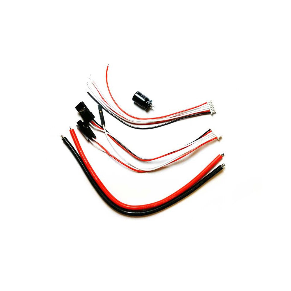 - Additionally there are three set of solder pads. One 5V output, and two at battery voltage level that can be used for video transmitters, accessories or the optional electrolytic capacitor (included)
