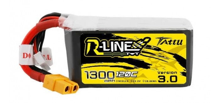 Tattu R-Line Version 3.0 1300mAh 22.2V 120C 6S1P Lipo Battery Pack with XT60 Plug