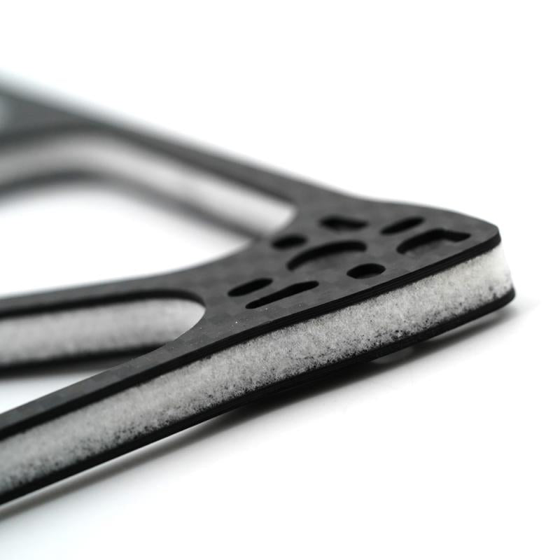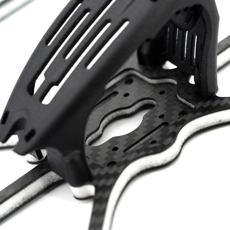 The SOURCE AUREO is an ultralight 7" frame, made for pilots who crave for range. Made with a rohacell like material sandwiched between 2 layers of carbon, the result is a super lightweight 7" frame - @49.5g. It fits and protects all the up-to-date components and is optimized for range. The SOURCE AUREO is your perfect long range cruiser, and is recommended for pro pilots only.