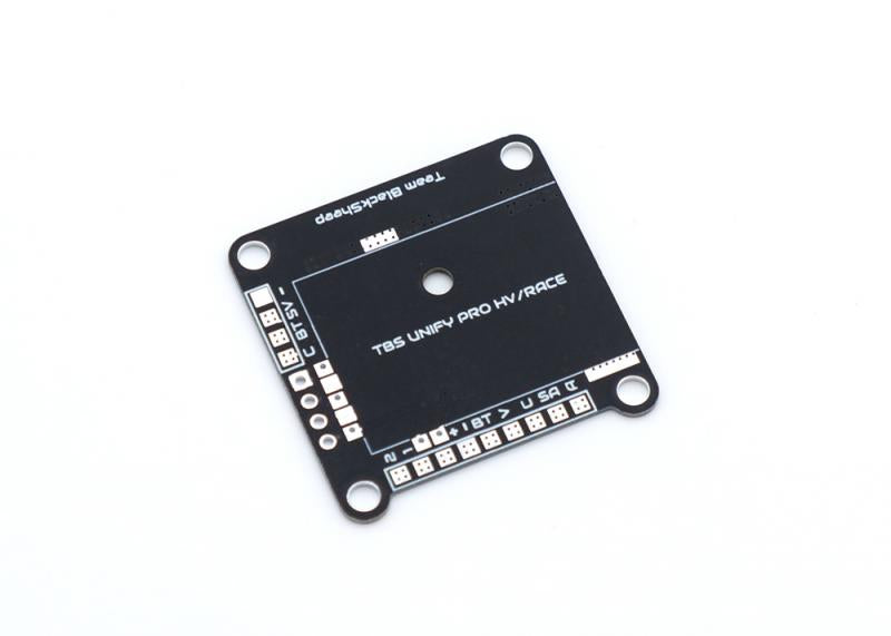 Allows a Team BlackSheep Unify Pro HV/HV-Race and receiver to be mounted on a board for a low profile and clean stacking solution. The pads allow you to solder your Unify to the mounting board. Once the Unify is mounted, you can either use the plug that comes with the Unify or directly solder the wires to the pads. The button extension can also be used with this by connecting one of the pads of the button to the board. From there, you can attach a remote button to place on the outside of your quad to allow for quick and easy access.