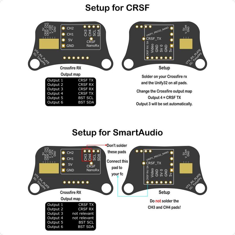 - Compatibility: TBS Unify Pro32 Nano, TBS Crossfire Nano RX
