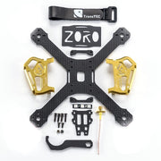 ZORO is designed to be a racing quadcopter featuring small size, light weight and fast speed, quadcopter frame is made of 4mm 3K carbon fiber chassis and CNC 7075 aircraft grade aluminum alloy shell, by using 7075 alluminum alloy, 12.9 degree screw, the ZORO is then super light and super durable, and compared with others material the CNC alluminum alloy has the optimal properties for effectively maximizing heat dissipation. The specially made structure also greatly reduce the air resistance. This ZORO quadcopter can be compatible with Flycolor Raptor S Tower and other standard F3 flight controller. And we can chose the BLheli 20-30A esc, 2205 2300-2600KV motors and 5040-5045 prop, battery that we can use 4S 1300-1800mah. In one word, the ZORO racing drone can meet all the requirements of professional players, the ZORO frame kit can offer you the unprecedented speed and outstanding maneuverability in racing!
